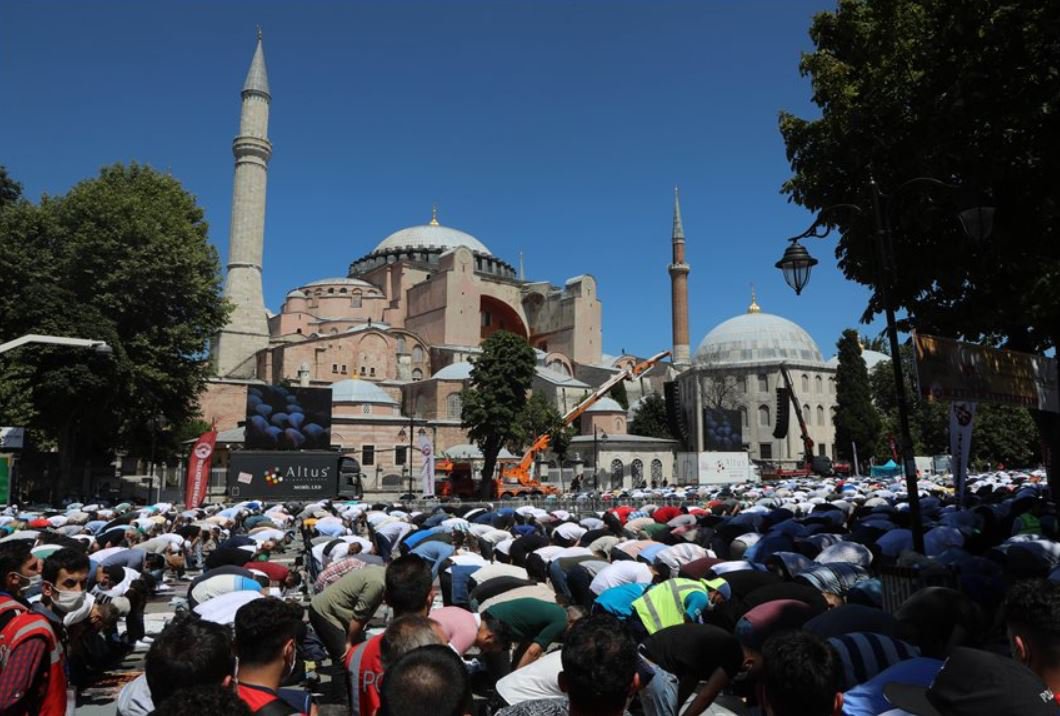 Όλα αυτά μία μέρα μετά που ο Ρετζέπ Ταγίπ Ερντογάν σφράγισε σαν άλλος πορθητής, με την παρουσία του την πρώτη μουσουλμανική τελετή στην Αγία Σοφία έπειτα από 86 ολόκληρα χρόνια.