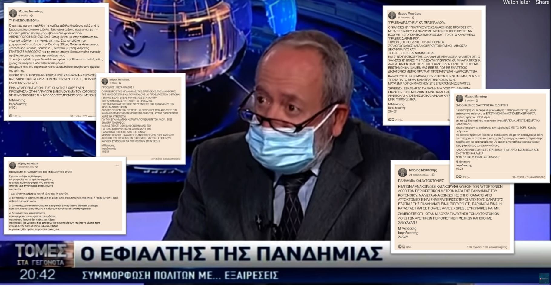 Γιατί άλλαξε γνώμη για τα εμβόλια ο ιατροδικαστής Μάριος Ματσάκης; Οι αναρτήσεις του από τον Νοέμβριο του 2020 με επιθέσεις κατά των «ειδικών» και «Προέδρου της Μπανανίας», ερωτήματα για τα εμβόλια και αντίθεση στα «φασιστικά» και «αντιδημοκρατικά» περιοριστικά μέτρα και safe passes.