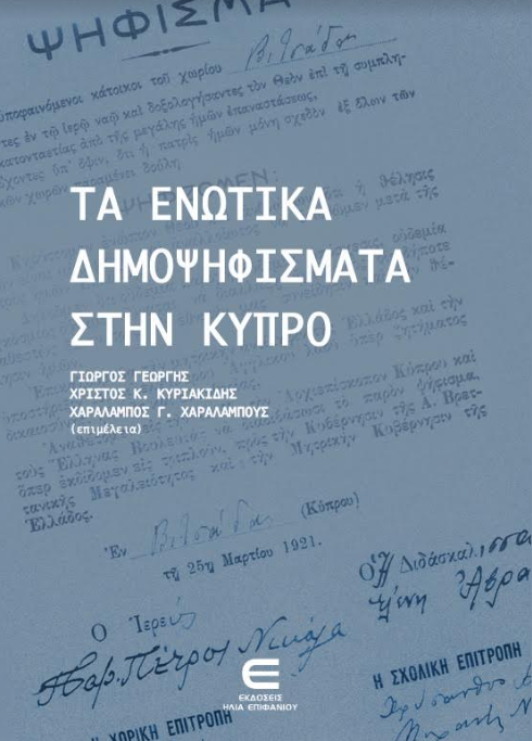 Κυκλοφόρησε πρόσφατα από τις Εκδόσεις Ηλία Επιφανίου ο συλλογικός τόμος με τίτλο «Τα ενωτικά δημοψηφίσματα στην Κύπρο», με επιμέλεια των Καθηγητή Νεότερης Ελληνικής Ιστορίας και πρώην Πρέσβη της Κύπρου στην Ελλάδα, Γιώργου Γεωργή, του διδάκτορα Νεότερης Ελληνικής Ιστορίας και Αναπληρωτή Εφόρου του Κρατικού Αρχείου Χρίστου Κ. Κυριακίδη και του υποψήφιου διδάκτορα Ιστορίας, Χαράλαμπου Γ. Χαραλάμπους.