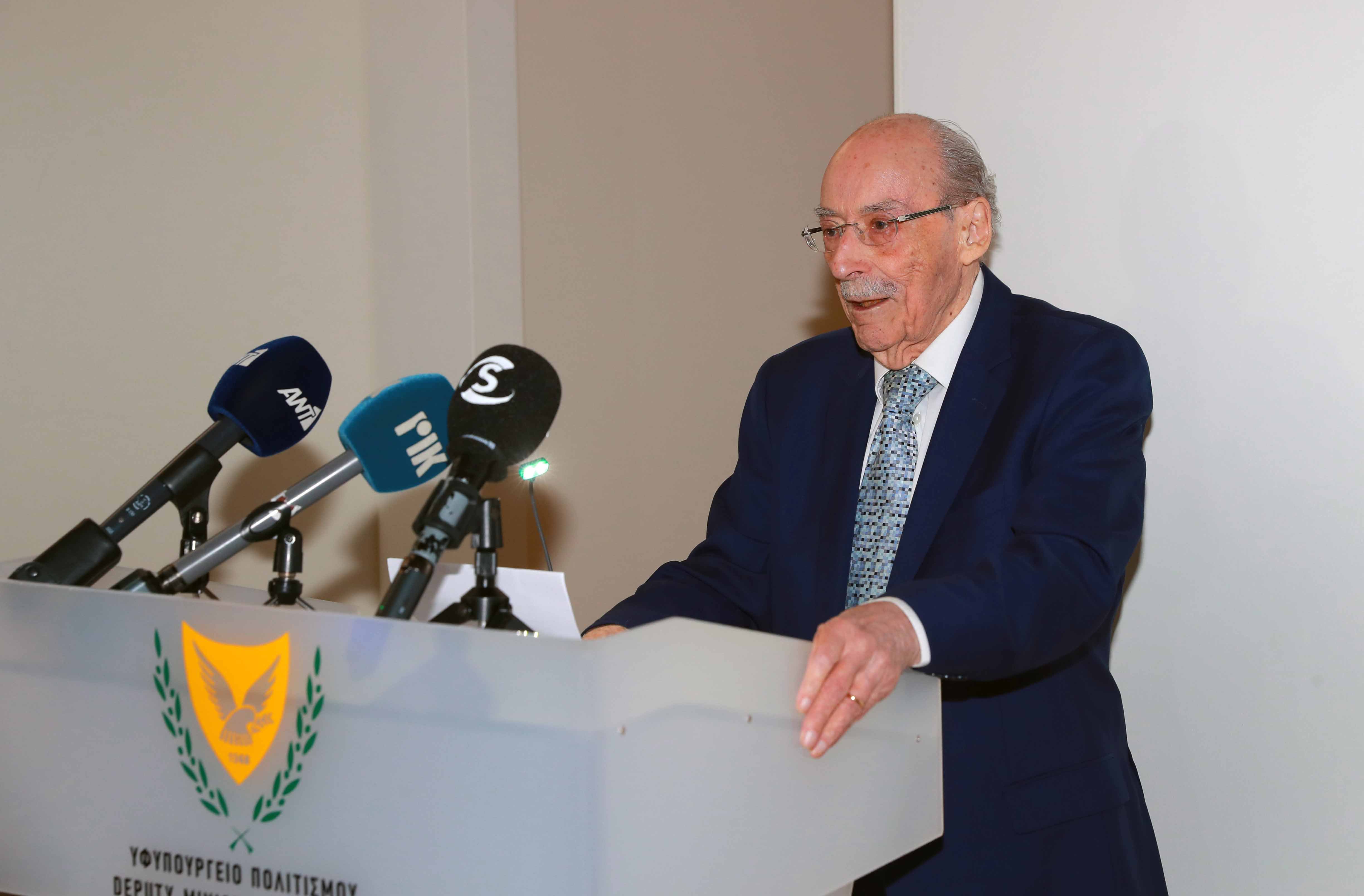 - • Ο Ρ. Λυσιώτης δείχνει μερικά από τα περιεχόμενα της δωρεάς.