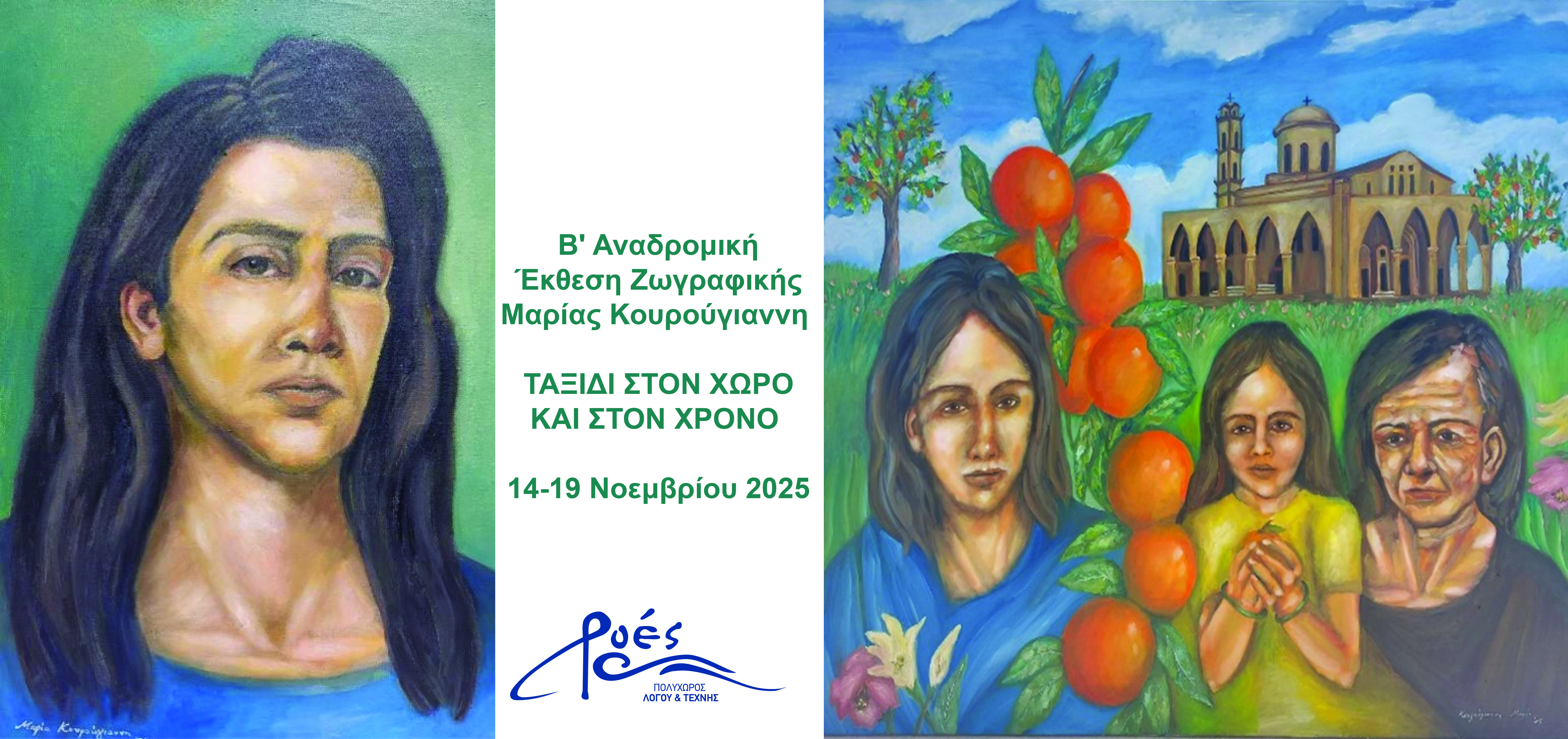 Ο Πολυχώρος Λόγου και Τέχνης ΡΟΕΣ* σάς προσκαλεί στη Β' Αναδρομική 'Εκθεση Ζωγραφικής της Μαρίας Κουρούγιαννη με τίτλο: «ΤΑΞΙΔΙ ΣΤΟΝ ΧΩΡΟ ΚΑΙ ΣΤΟΝ ΧΡΟΝΟ».