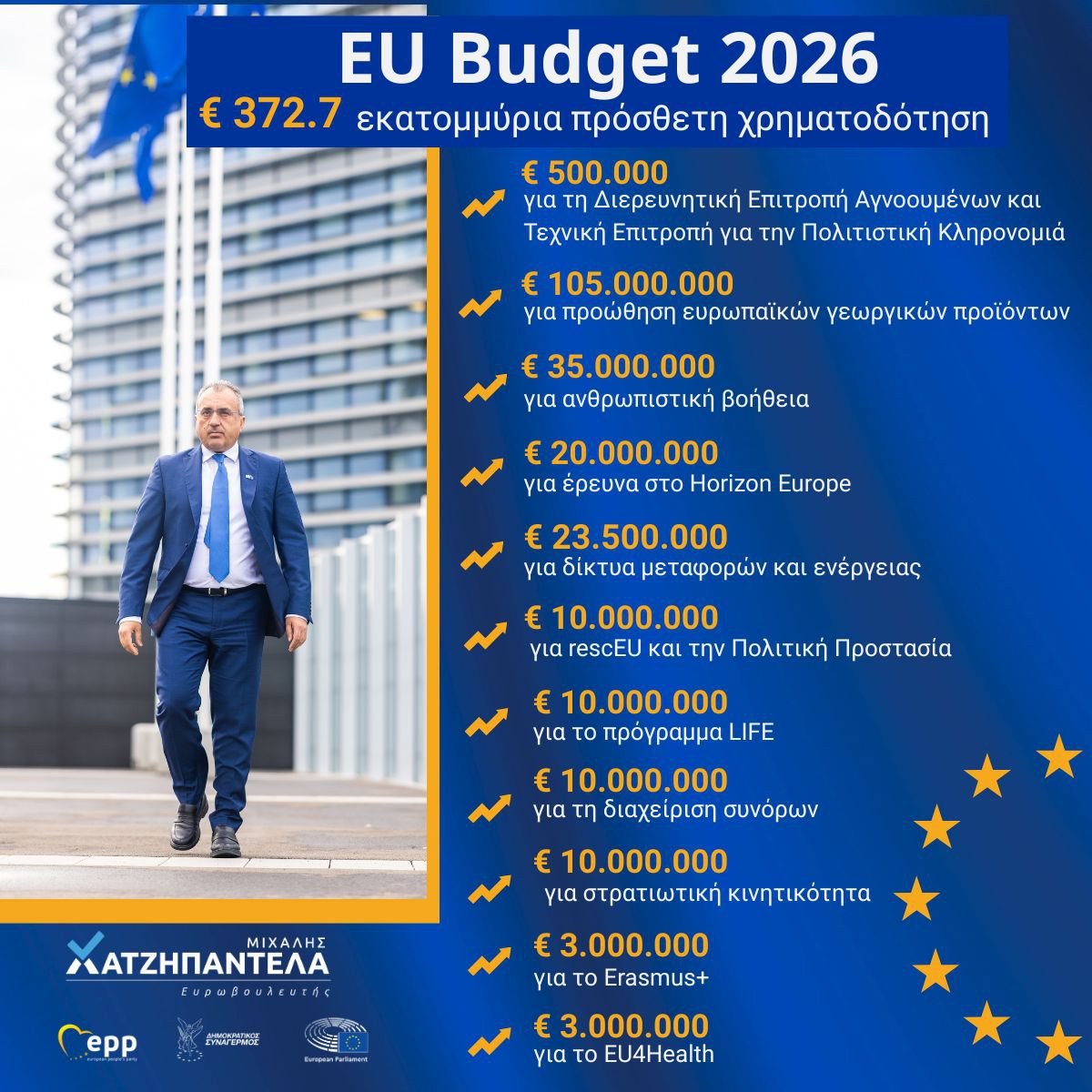 «Ο Προϋπολογισμός του 2026 αποτελεί μια ισχυρή δέσμευση: μια Ευρώπη που προστατεύει, που στηρίζει και που δεν αφήνει κανέναν πίσω. Μια Ευρώπη που επενδύει στους ανθρώπους της και στο κοινό μας μέλλον».