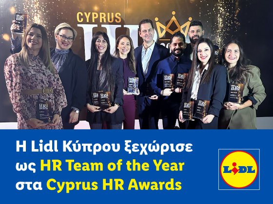 Η Lidl Κύπρου ξεχώρισε στα Cyprus HR Awards ως HR Team of the Year, κατακτώντας τα περισσότερα βραβεία από κάθε άλλη εταιρεία: 7 Gold, 2 Silver και 3 Bronze.