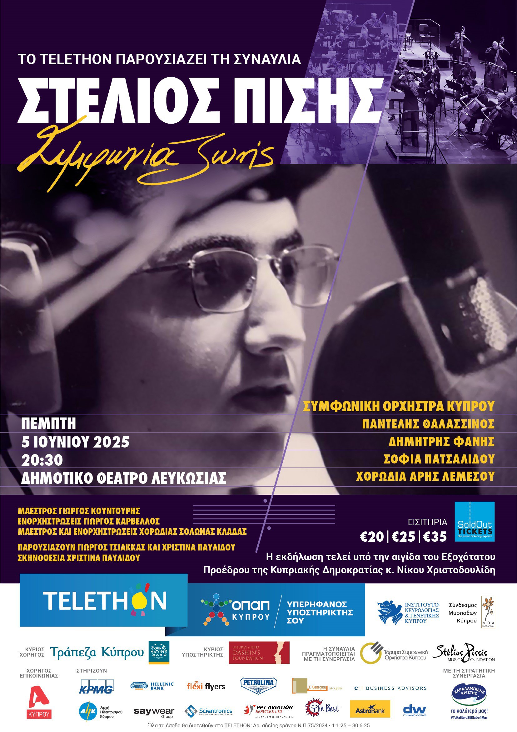 Την Πέμπτη 5 Ιουνίου 2025, το TELETHON Κύπρου τιμά τη μνήμη και το έργο του αείμνηστου Στέλιου Πισή, με μια ξεχωριστή συναυλία στο Δημοτικό Θέατρο Λευκωσίας, υπό τον τίτλο «Στέλιος Πισής – Συμφωνία Ζωής». Η εκδήλωση τελεί υπό την αιγίδα τουΠροέδρου της Κυπριακής Δημοκρατίας, Νίκου Χριστοδουλίδη, και πραγματοποιείται σε συνεργασία με το Ίδρυμα Συμφωνικής Ορχήστρας Κύπρου και το Stelios Pissis Music Foundation.