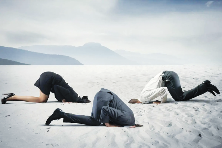 Πολλές φορές επιλέγουμε να κρύβουμε το κεφάλι στην άμμο παρά ν’ αντιμετωπίζουμε τα δύσκολα προβλήματα και τα καθοριστικά διλήμματα, προσποιούμενοι ότι δεν υπάρχουν, αφού δεν τα βλέπουμε.