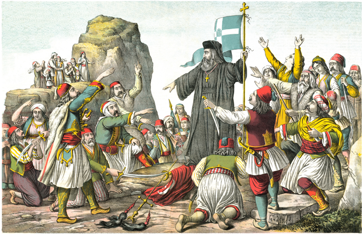 Στρέφουμε με συγκίνηση τον λογισμό προς τη θυσία όλων των Ελλήνων, που με το αίμα τους και τους άφθαστους ηρωισμούς τους αποτίναξαν τον οθωμανικό ζυγό και, παρ’ όλες τις ραδιουργίες της Ιερής Συμμαχίας και τις αντιδράσεις των οπισθοδρομικών δυνάμεων της οθωμανικής στρατιωτικής φεουδαρχίας, πέτυχαν την εθνική ανεξαρτησία και έθεσαν τις βάσεις του Νεοελληνικού Κράτους.